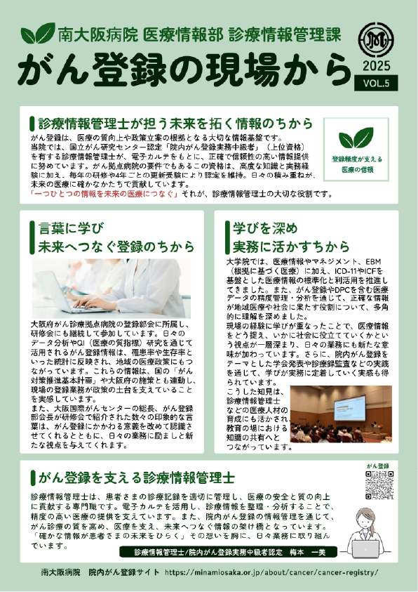 これまでの経験をもとに、診療情報管理士の視点から、5大がんをはじめとする各専門領域の医師とともに築いてきた「がん診療連携拠点病院」としての歩みをご紹介します。