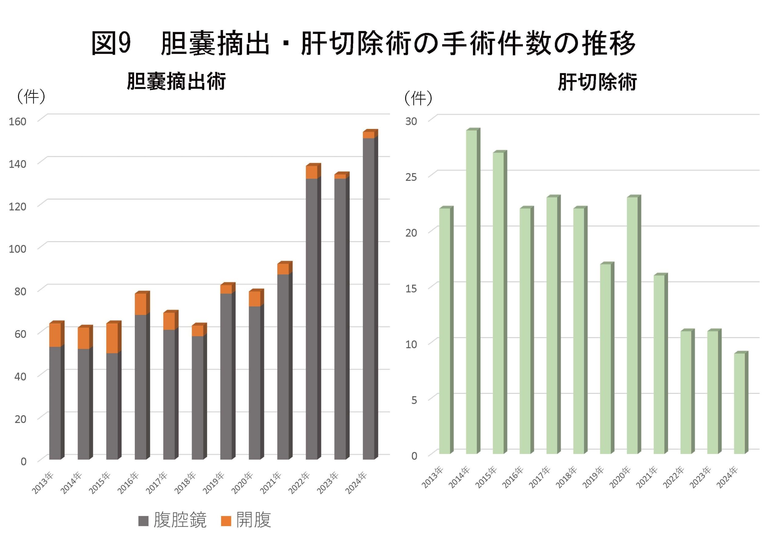 8)胆嚢摘出術・肝臓手術件数