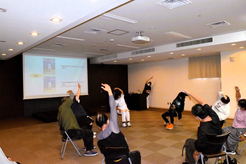まず、理学療法士による運動療法を行いました。今回は日常生活でも取り入れることのできる椅子に座りながらの体操を行いました。その後、看護部による、『減量に繋がる栄養』についてのクイズがありました。引き続く、交流会ではこれから手術を受けられる方とすでに手術を受けられた方の意見交換が交わされました。すでに手術を受けられた方は大幅な体重減少に繋がっていました。実体験に基づく意見はとても有意義な情報であり、活発な意見交換を行うことができました。先日、手術を受けられた方からは「手術を受けたことで着たい服を段々着ることが出来るようになった。」「未来に希望が持てるようになった」との意見がありました。
