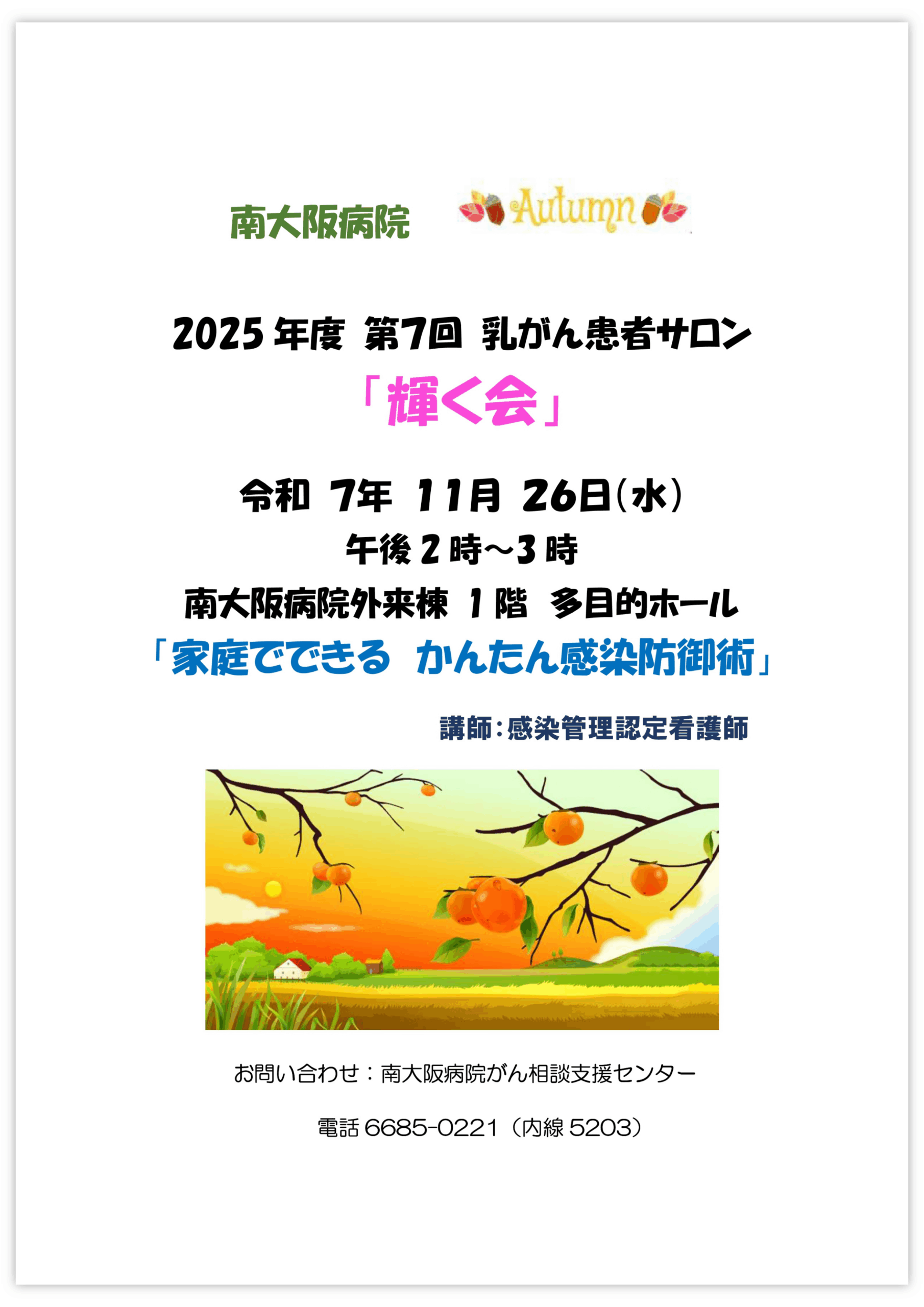 今回、2025年11月26日に南大阪病院乳がん患者サロン『輝く会』を開催します。
