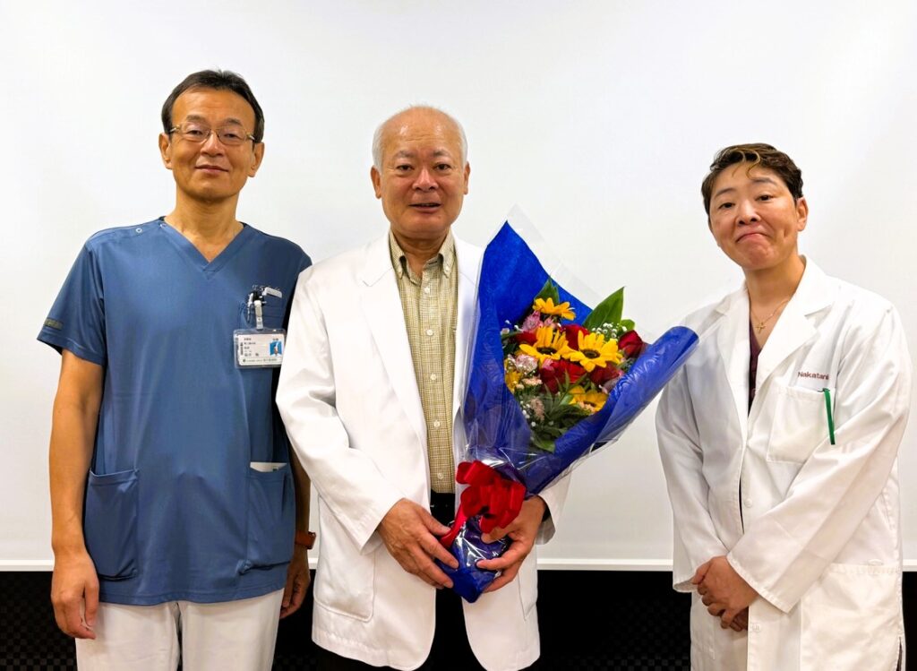 本年度の秋の叙勲で当院特別顧問の荒川哲男先生が、瑞宝中授賞を授賞されました。当院にとって名誉なことであり、非常に喜ばしいことです。11月7日の朝礼において、職員に知っていただくことと、お祝いの記念品を贈呈しました。