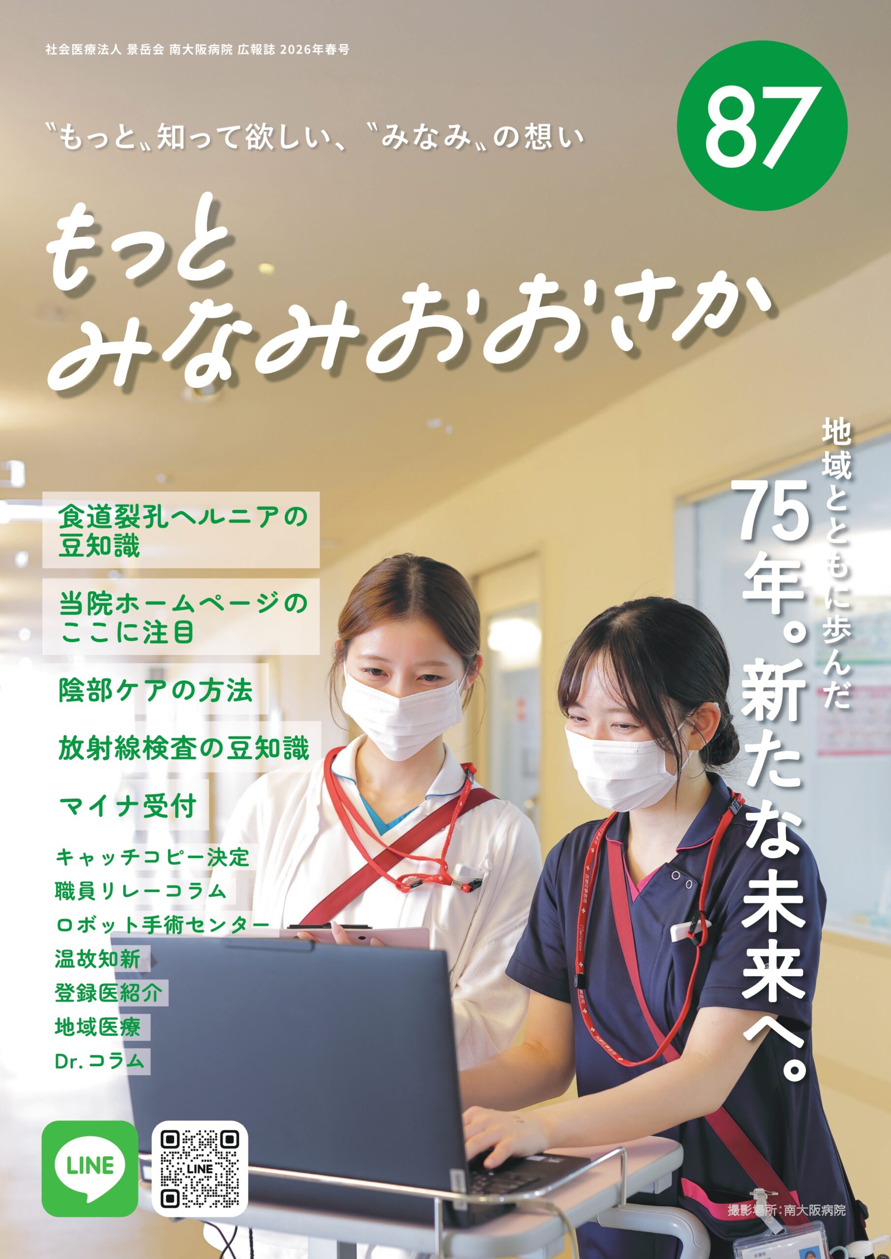 南大阪病院広報誌「もっとみなみおおさか」は、外来受付や検査室前、病棟などに配置しております。また、ホームページでも閲覧できます。
