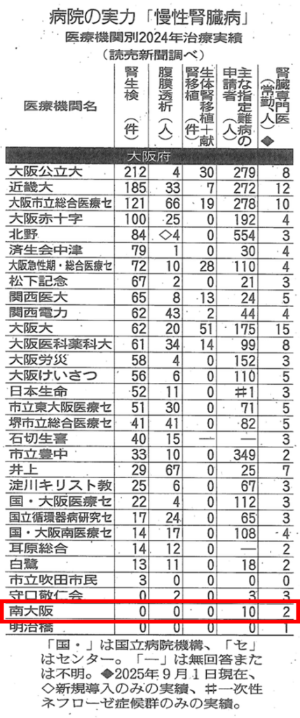 2025年12月21日 読売新聞 病院の実力「慢性腎臓病」医療機関別2024年治療実績に、当院の慢性腎臓病の治療の実績が掲載されました